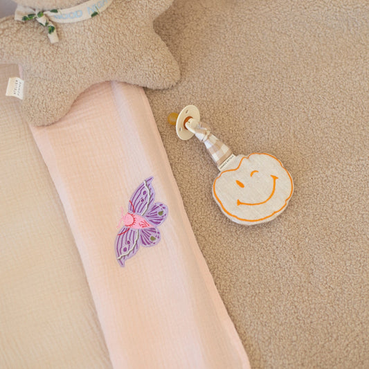 A super soft sheet as an extra layer under the blanket in the cot. A must-have for the nursery, made of 100% organic muslin cotton, and even more beautiful with one of our personalization options.