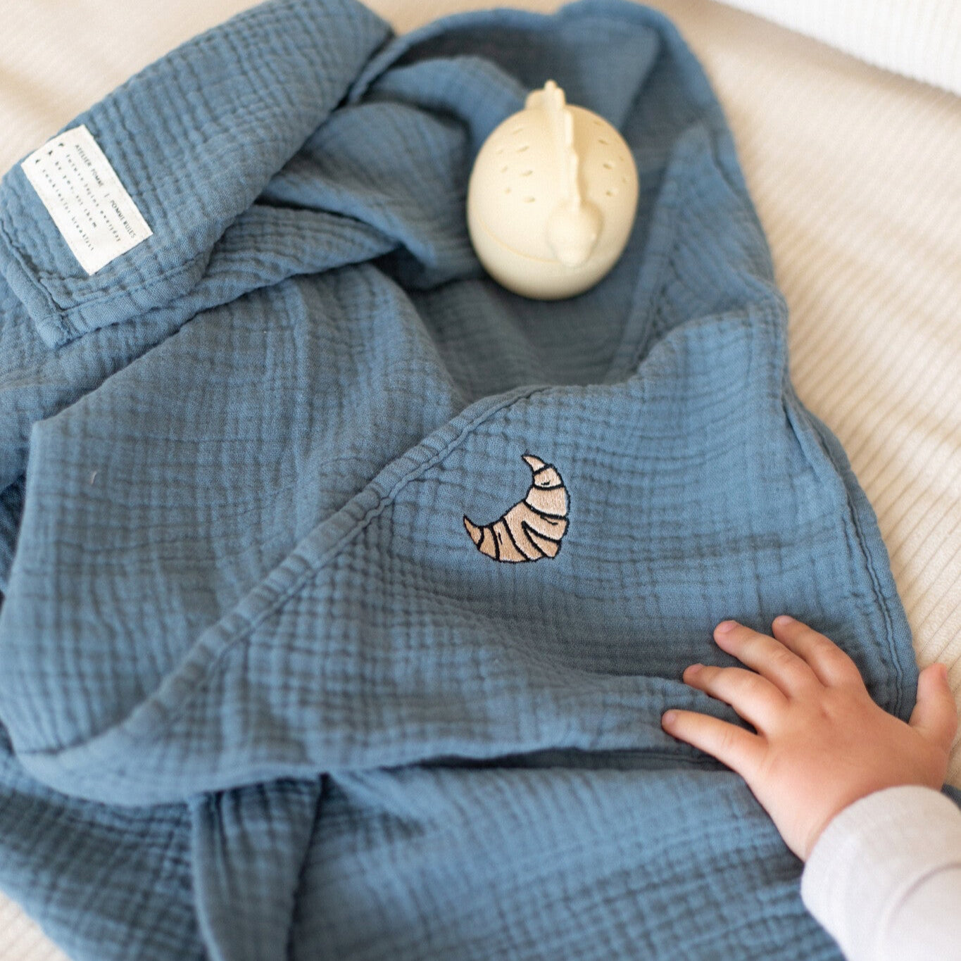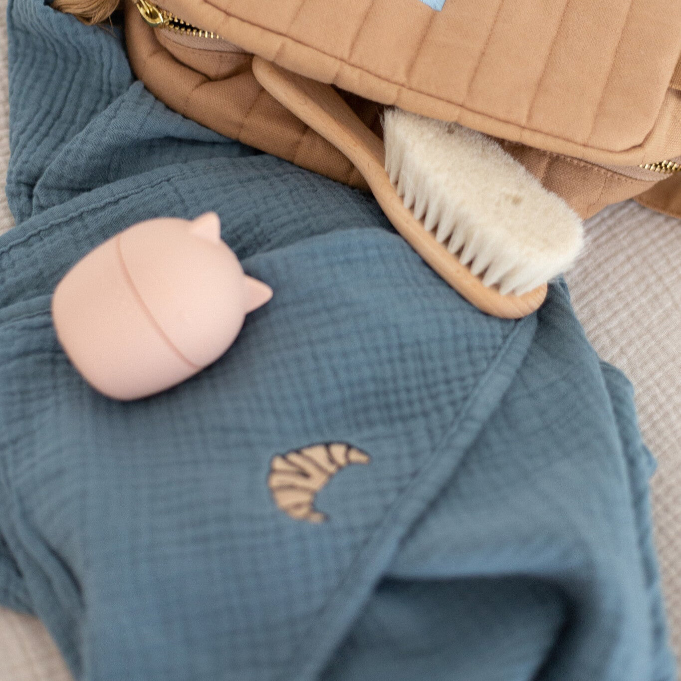 We li-la-love the BATH TOWEL! The towel is multifunctional and super cosy for after bathing, swimming lessons, or a long beach day! And how cute is your mini wrapped in this super-soft BATH towel of 100% organic muslin cotton! Personalize it with a name or a unique icon for the perfect gift (for yourself ;-))