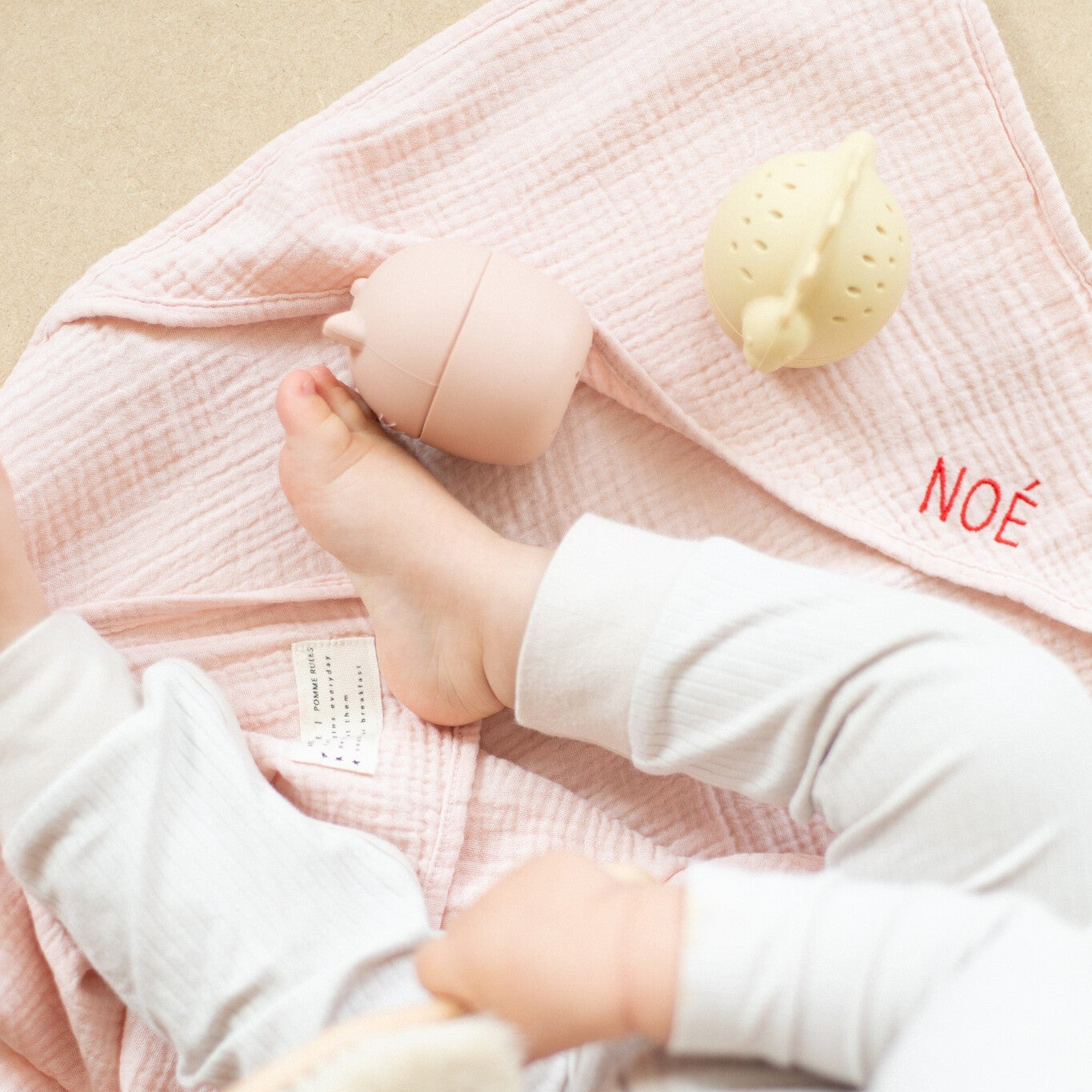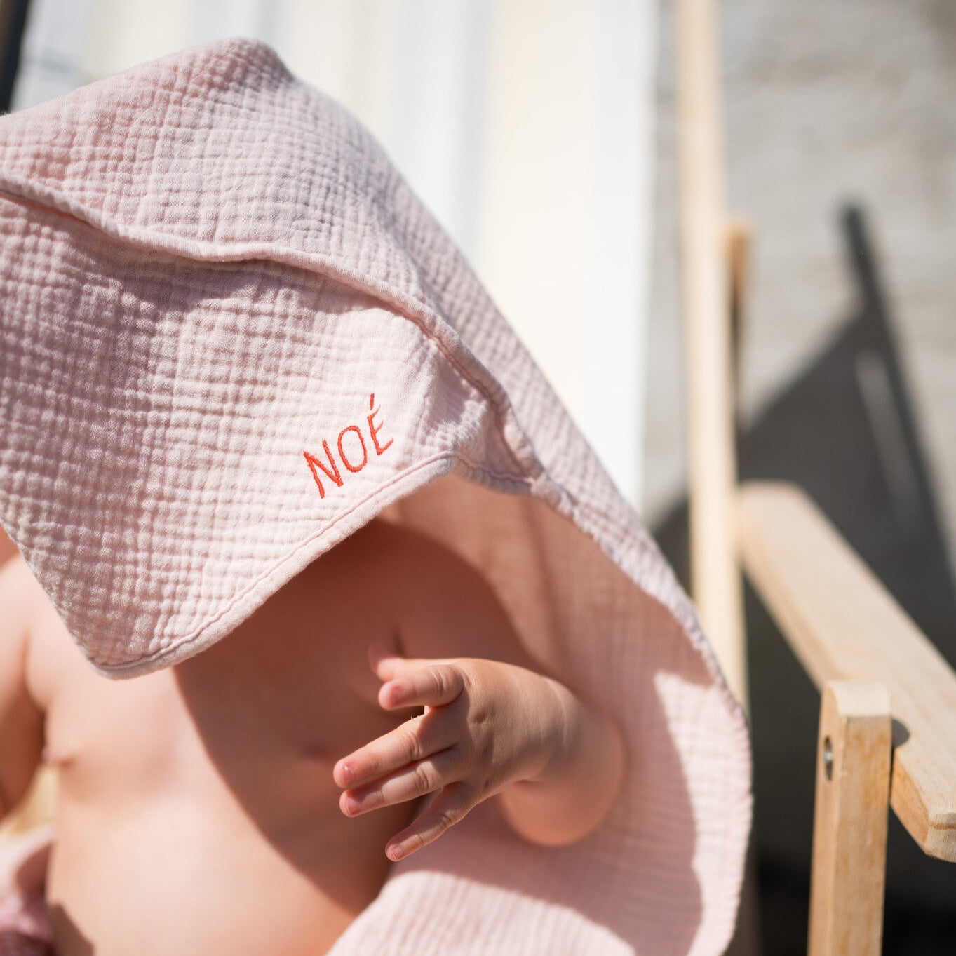 We li-la-love the BATH TOWEL! The towel is multifunctional and super cosy for after bathing, swimming lessons, or a long beach day! And how cute is your mini wrapped in this super-soft BATH towel of 100% organic muslin cotton! Personalize it with a name or a unique icon for the perfect gift (for yourself ;-))