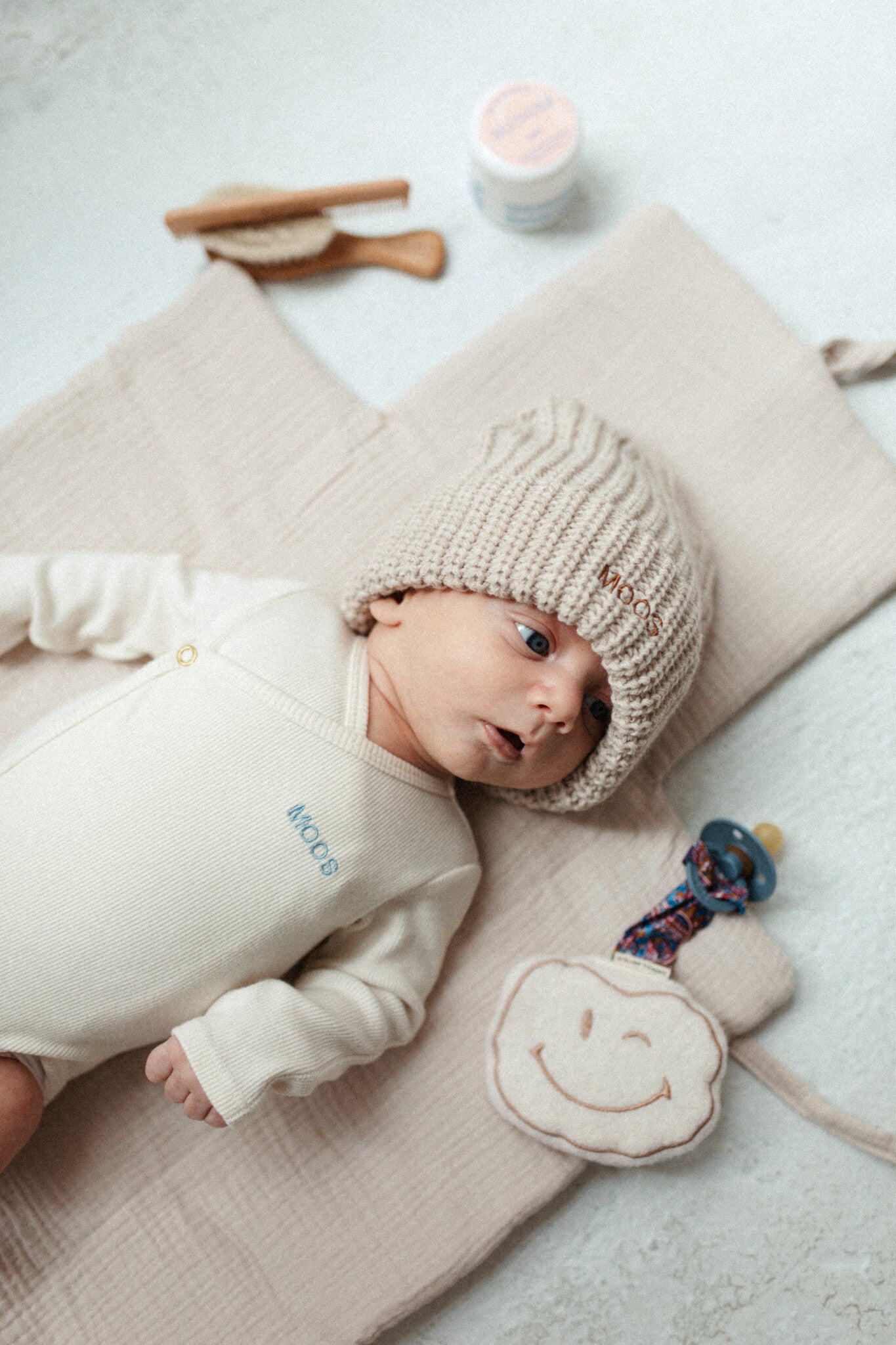For moms, dads, and beebs on the road we have the BUMPY On THE ROAD changing mat. Ideal to wrap all your baby needs into a compact package. And… you can change your baby anytime, anywhere on this super-soft muslin mat. The BUMPY ON THE ROAD is a good size and a pocket on the inside that fit diapers and cloths. Handy! Also cute to personalize with the name of your baby!