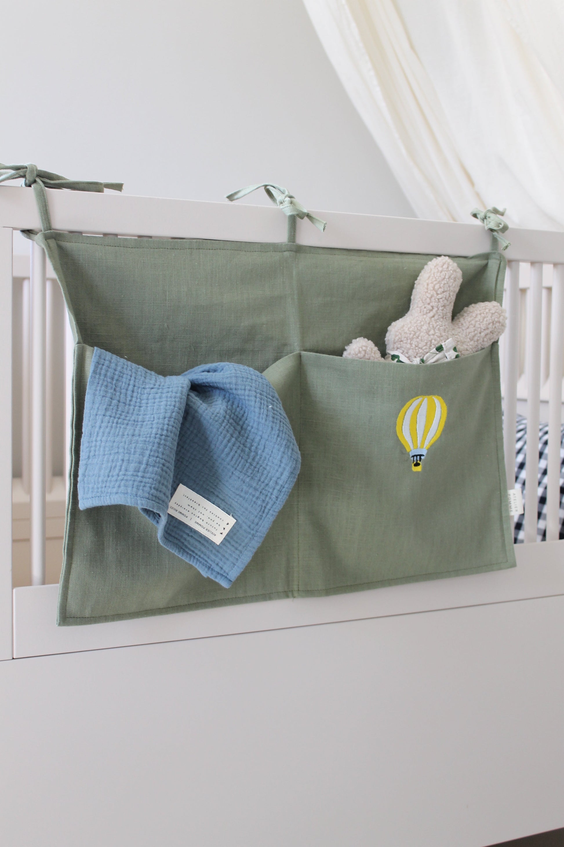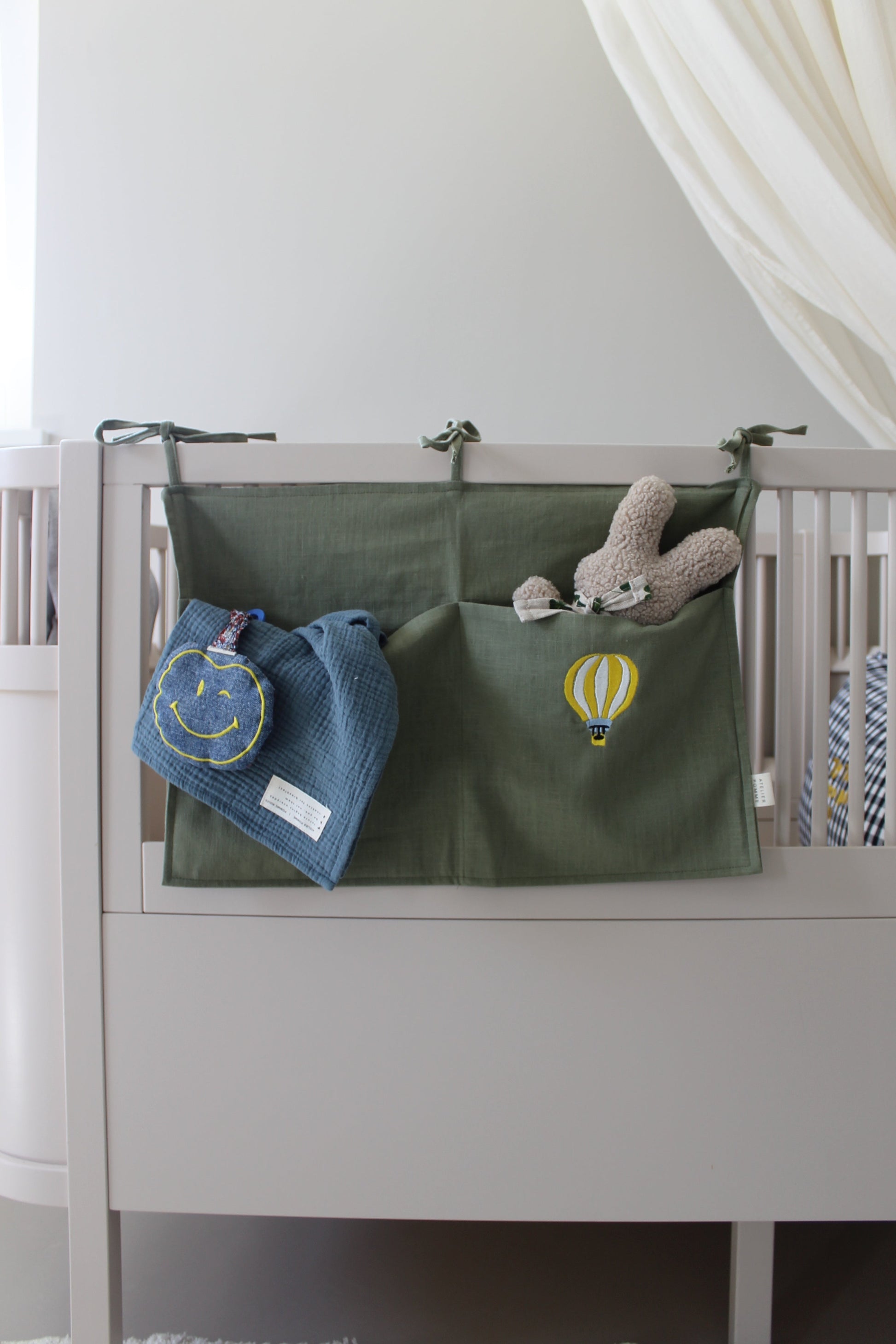 Keep them close! Keep all of your baby essentials within reach with the HANG IN THERE organizer. This linnen organizer has two compartments large enough to fit all baby’s needs, such as diapers, swaddles, their favorite teddy bear, pacifier, and toys. Hang it on the bed or box for a cozy look.