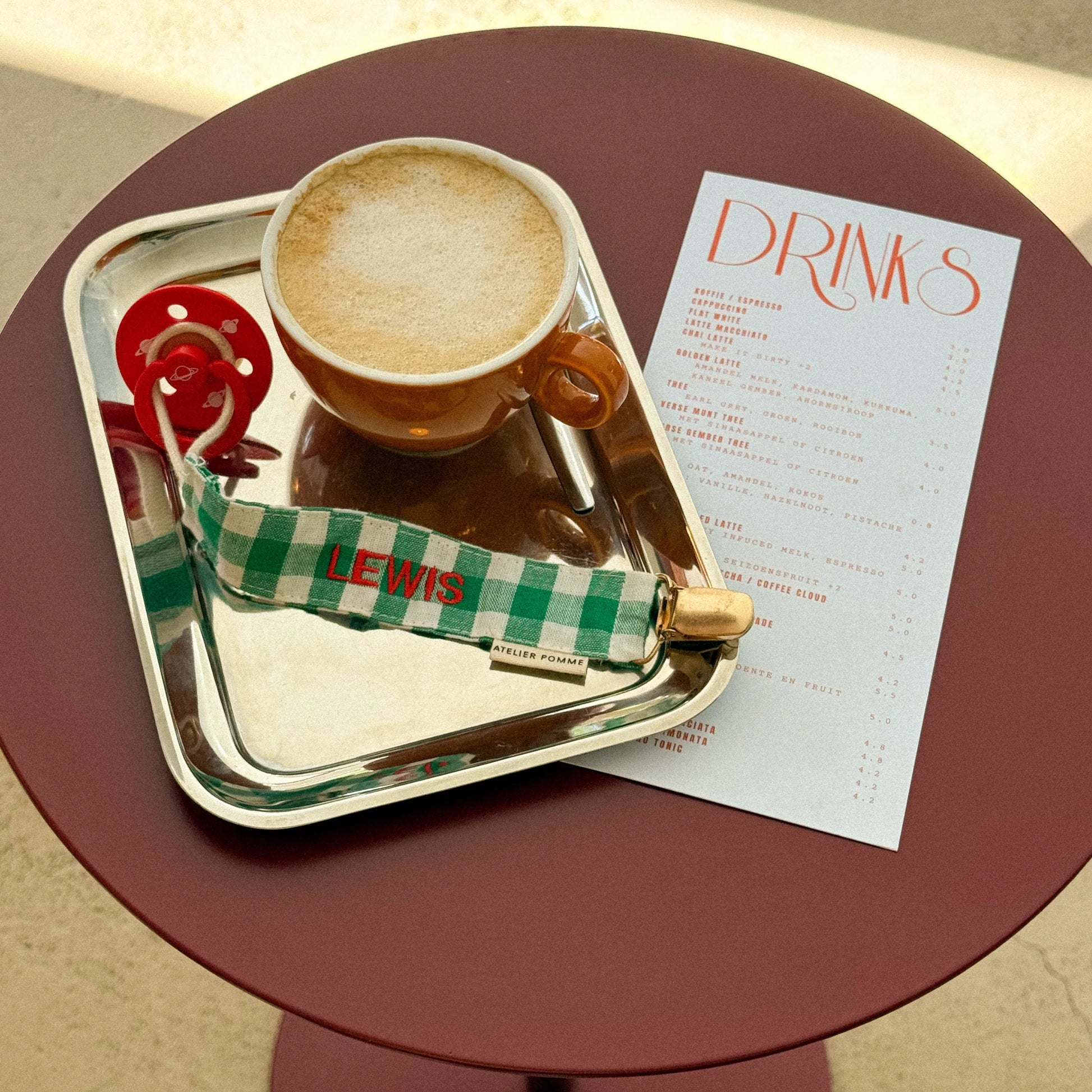 Nothing more annoying than losing a pacifier while your baby is inconsolable. That will never happen again with the KEEP-IT-CLOSE PACIFIER CORD! You can easily attach a pacifier to our pacifier cord and the cord can be attached to your child's clothing, to a cuddle cloth or to the straps of a car seat with the accompanying clip. The KEEP-IT-CLOSE PACIFIER CORD is made from residual material. Of course you can also have the name of your child embroidered on it!