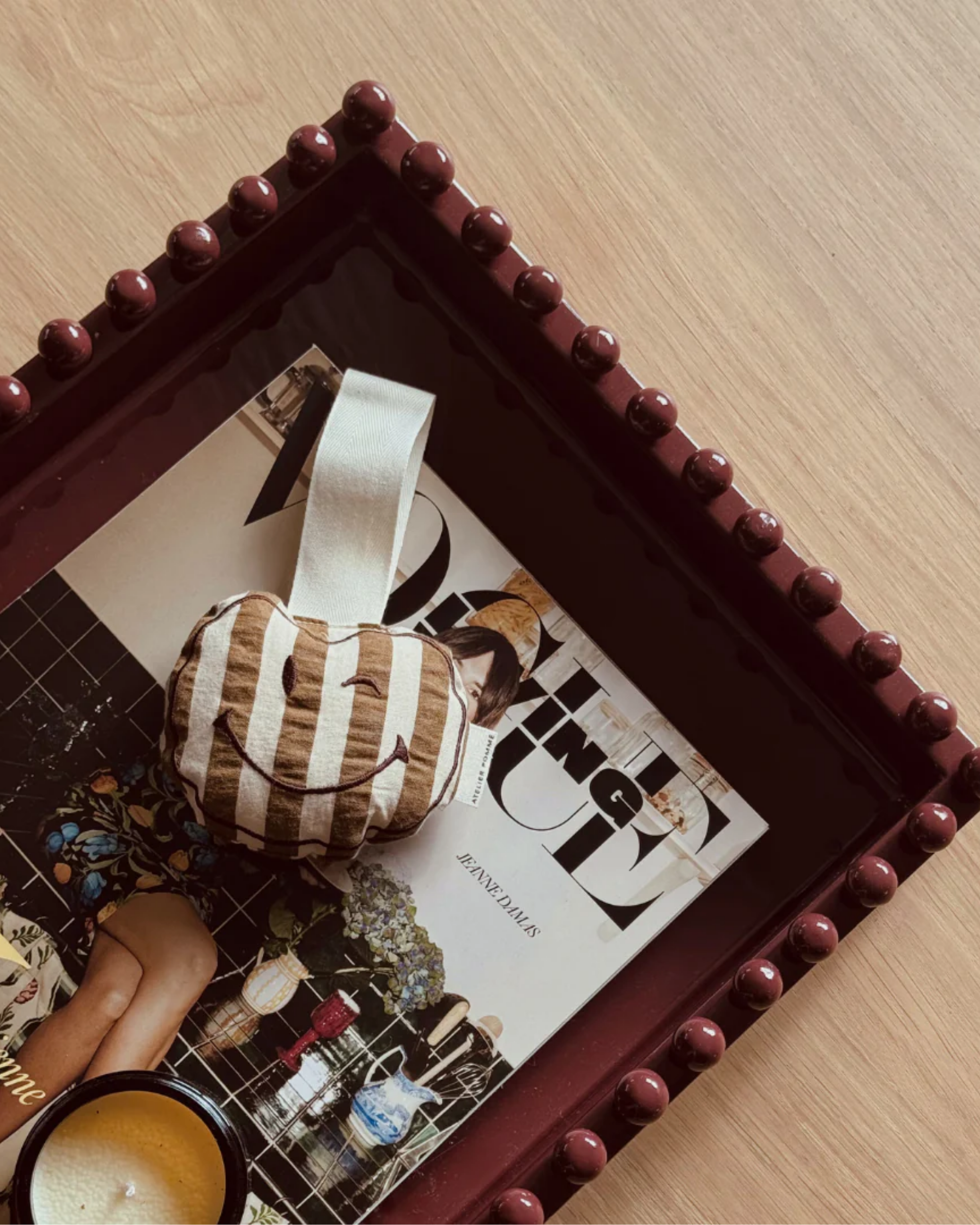 Hi there, my happy friend! Our day one happy maker! The cute apple is the POMME CUDDLE, a sweet smiley that guards your little one pacifier. The cuddle is made of super soft muslin cotton and has a cord to which you can attach a pacifier. POMME CUDDLE also loves to cuddle a lot with your baby. POMME is available in different cheerful colors with a cute print on the back!