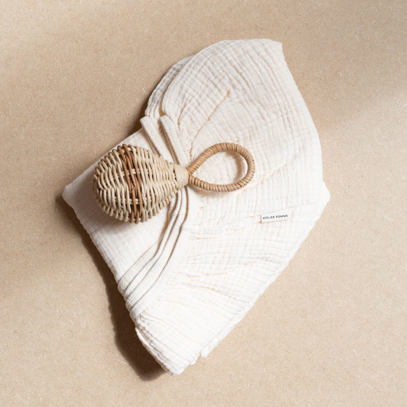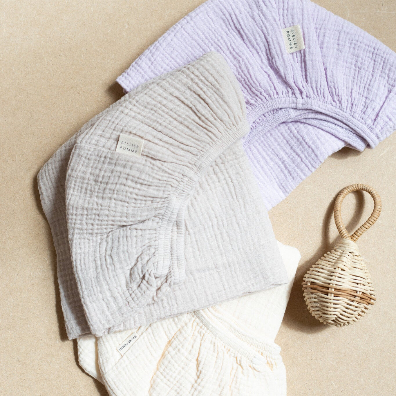 Of course a fitted sheet of our beautiful and natural muslin material couldn’t be missed in our bedding collection. Imagine how comfy your mini will sleep on this little sheet and how amazing it will look in the made bed. The mega-soft SLEEP TIGHT FITTED SHEET fits the mattress of your crib perfectly due to its elastic bands. There are three sizes and of course the colors COSY WHITE, BEACHY BEIGE, and LUCKY LILA fit the rest of our bedding collection perfectly! Nighty night!