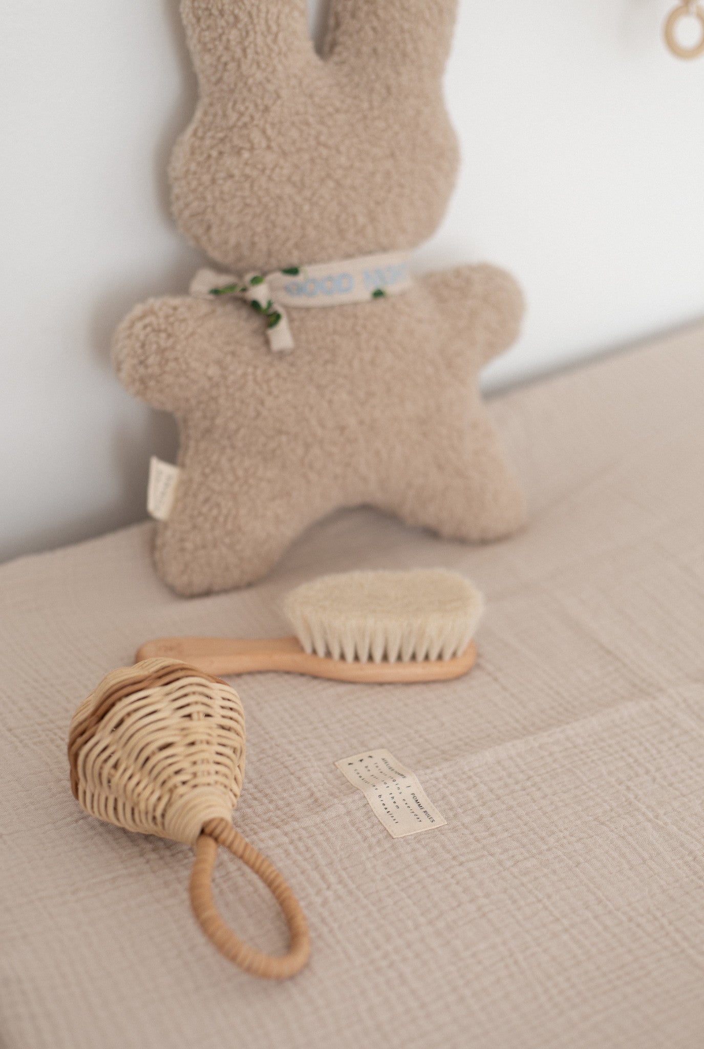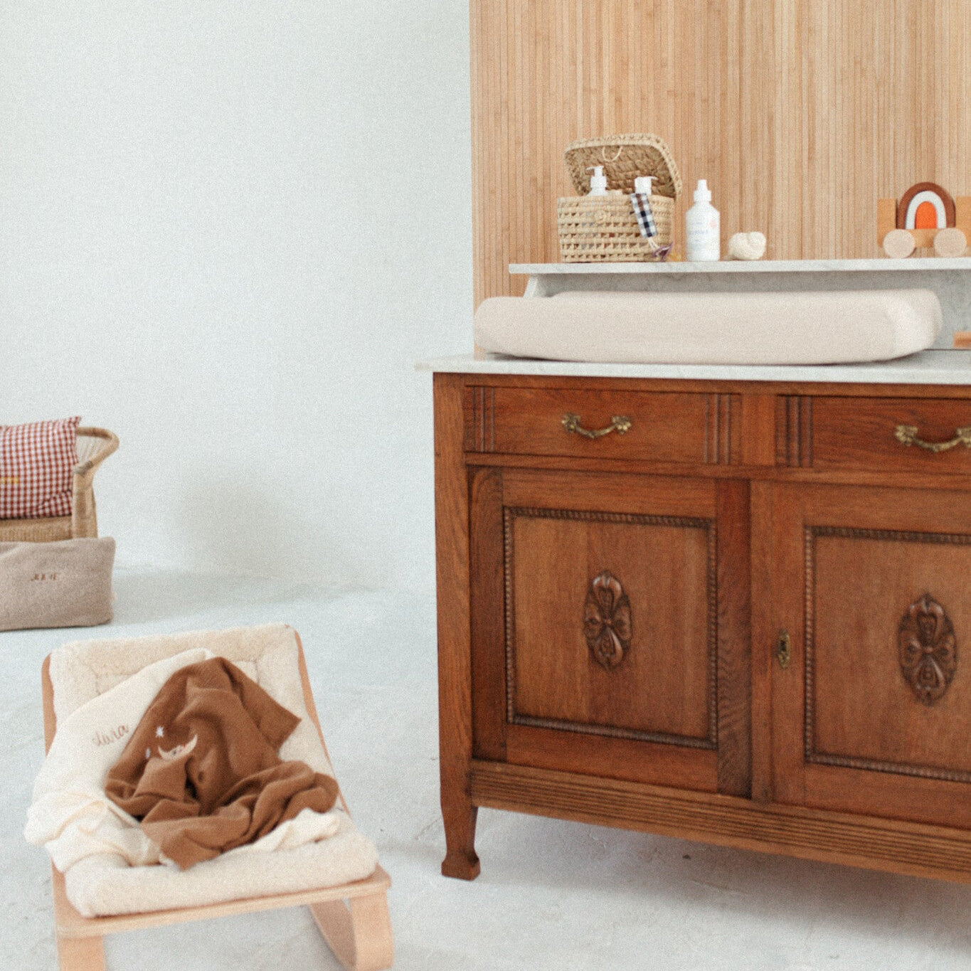 With our mega-soft CHANGING COVER you’ll change your baby in style, because we want nothing else for those cute baby bottoms. The cover for the changing pillow is made of super soft, chunky muslin beautiful natural tints. The elastic bands make sure the CHANGING COVER fits the pillow perfectly, and that it stays in place when you and your baby are cuddling.