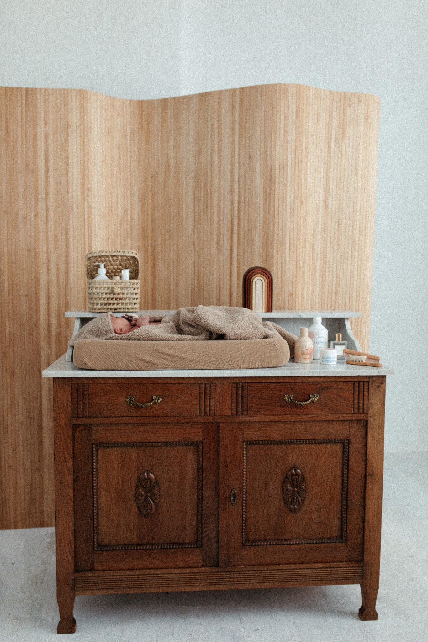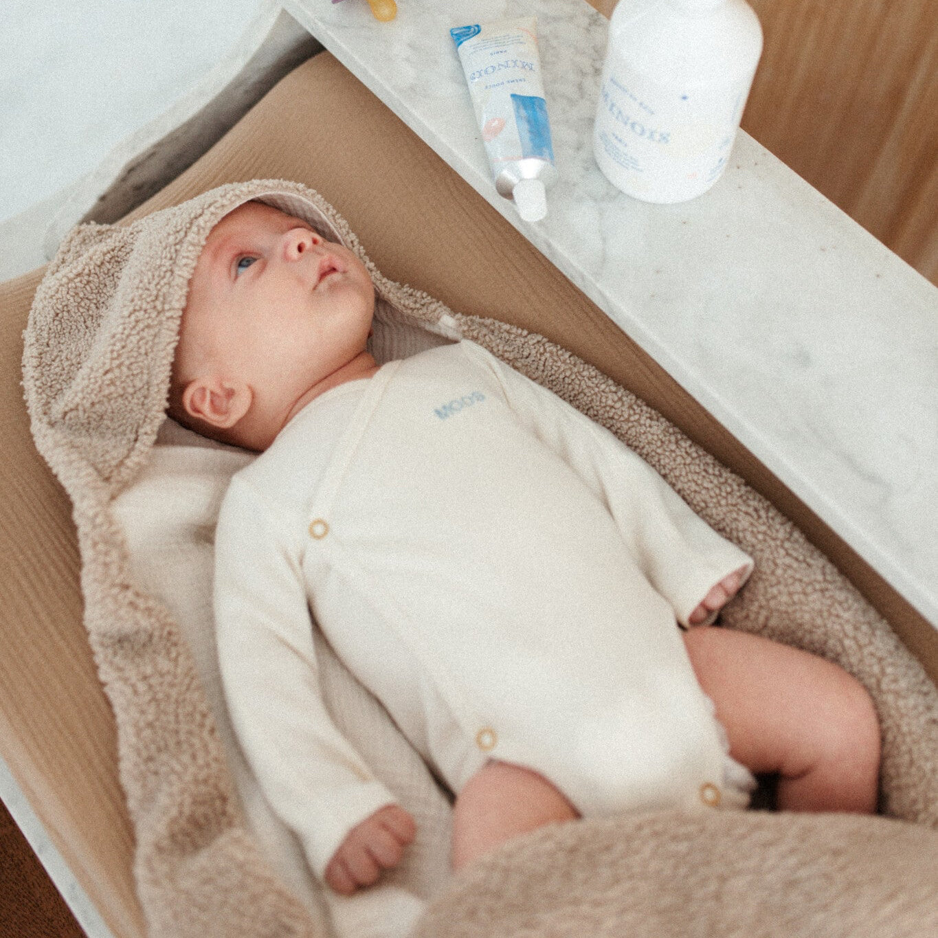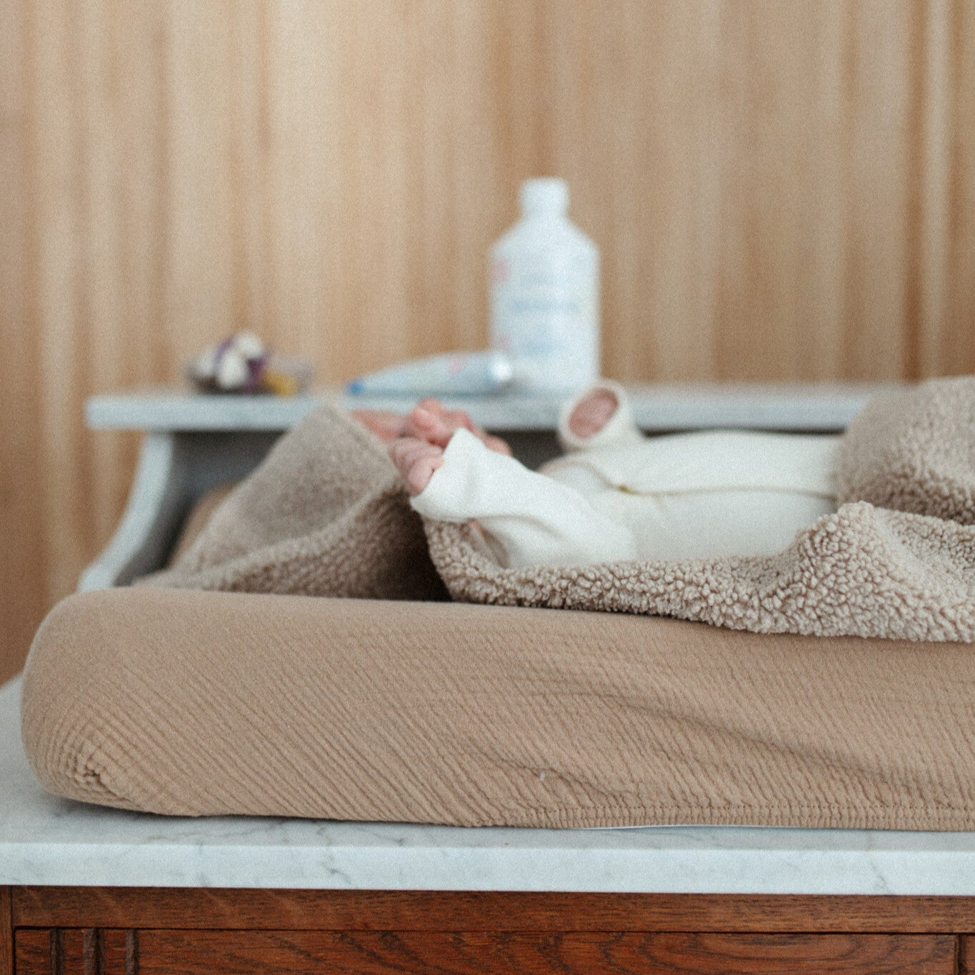 With our mega-soft CHANGING COVER you’ll change your baby in style, because we want nothing else for those cute baby bottoms. The cover for the changing pillow is made of super soft, chunky muslin beautiful natural tints. The elastic bands make sure the CHANGING COVER fits the pillow perfectly, and that it stays in place when you and your baby are cuddling.