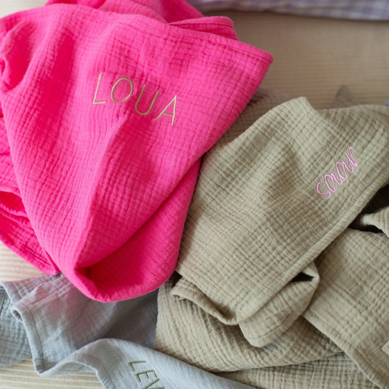 Night night! FLAT SHEET are the softest crib sheet for your baby, as an extra layer under the blanket in the crib or co-sleeper. The sheet is made of amazing organic and durable muslin cotton, making it super soft for the baby skin. A must-have for the bedroom of your little one, and even better with their name embroidered on it.
