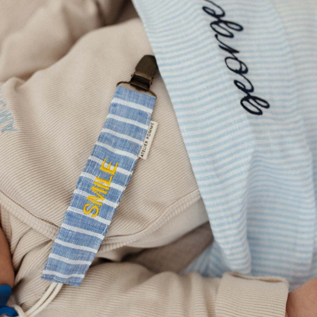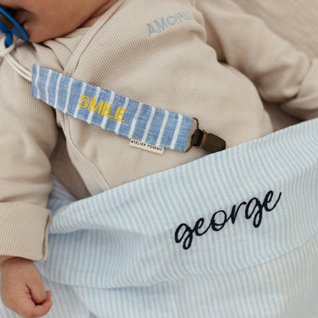 | PICK IT | STITCH IT | LOVE IT Make it all yours: personalize your favorite item with a name or choose from our unique POMME icons. The FLAT SHEET is personalized BOTTOM MID. |